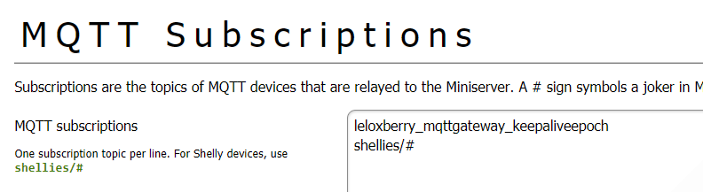 You show us the Shelly topic. You show us the parts of the VI config. You show us the log from the miniserver. You are reporting us problems with your program but you don’t show us your program. How should we help you?Miniserver; KNX; Vitogate; EnOcean (EnOceanPi); Loxone Air; Caldav-Kalenderanbindung; RaspberryPi und für keine Frickellösung zu schade :-) -