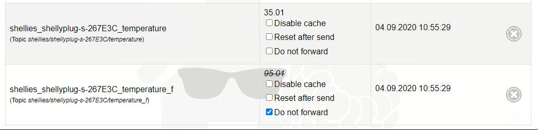 In der Incoming Overview, mit aktivierter "Advanced table information", kann jetzt selektiv ausgewählt werden, dass gewisse Daten nicht an den Miniserver übertragen werden. Das verringert die Belastung des Miniservers. Das Deaktivieren des Forwardings funktioniert auch mit Daten innerhalb einer JSON Payload. Ein Wert, bei dem die Weiterleitung deaktiviert wurde, wird in der Incoming Overview durchgestrichen dargestellt.