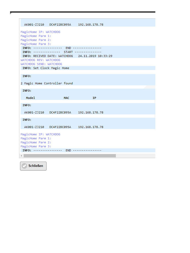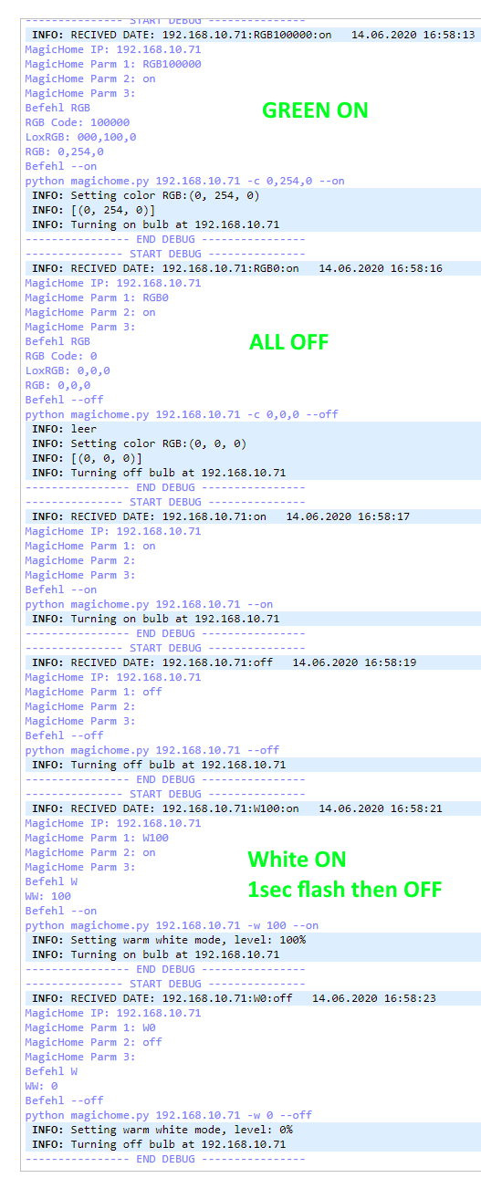 Habe schon diverse Änderungen probiert, vom Port über : angehängt statt / vom Weiß-Befehl WW für Warmweiß statt W...