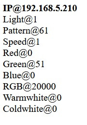 1. Kann sein das die 4PIN RGB strip mit AK001-ZJ200 model, geht nicht mit "192.168.1.2:W<v>on" command?