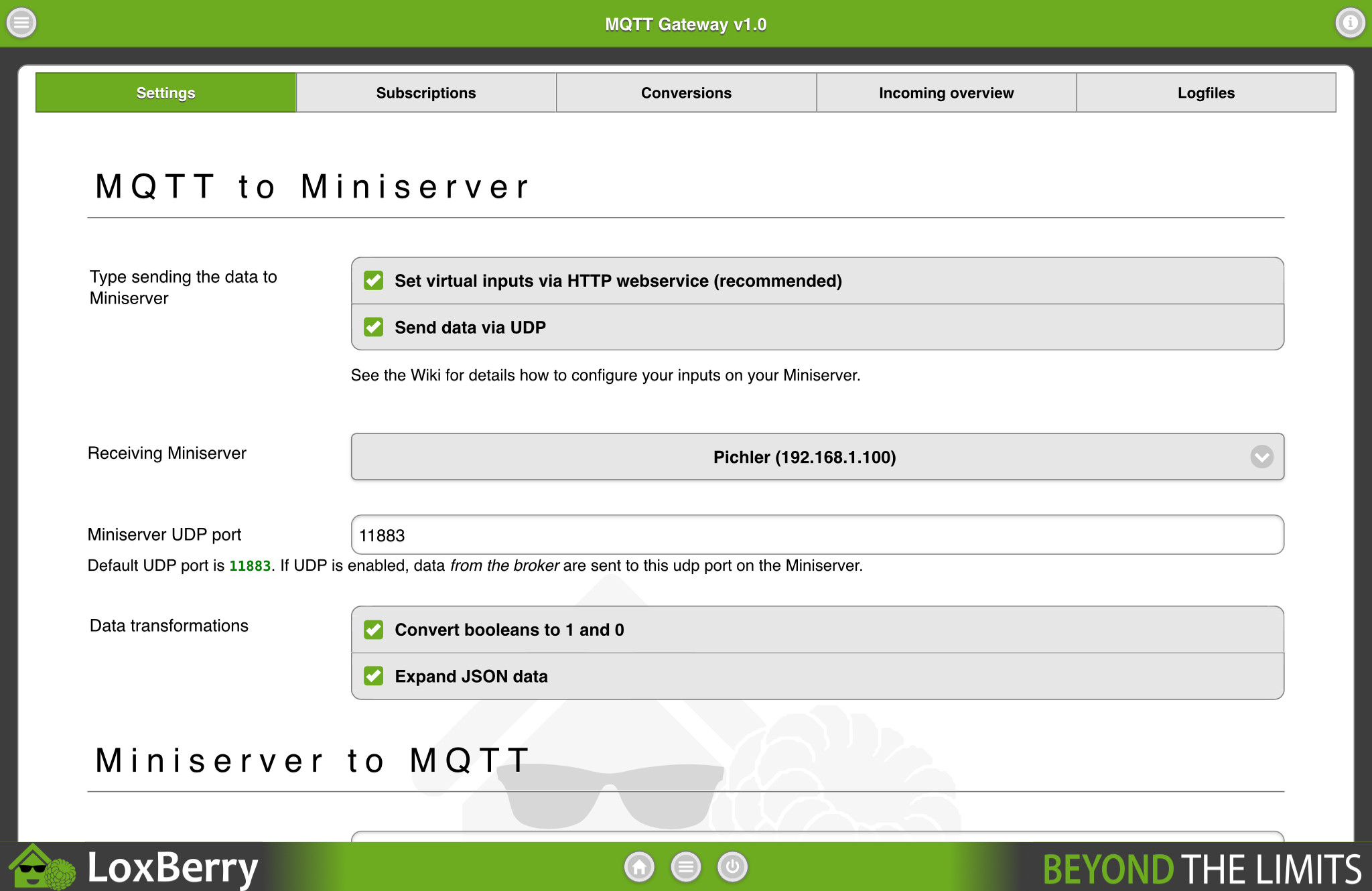 Der UDP-Port, mit dem der Miniserver mit dem MQTT Gateway spricht, ist 11883.