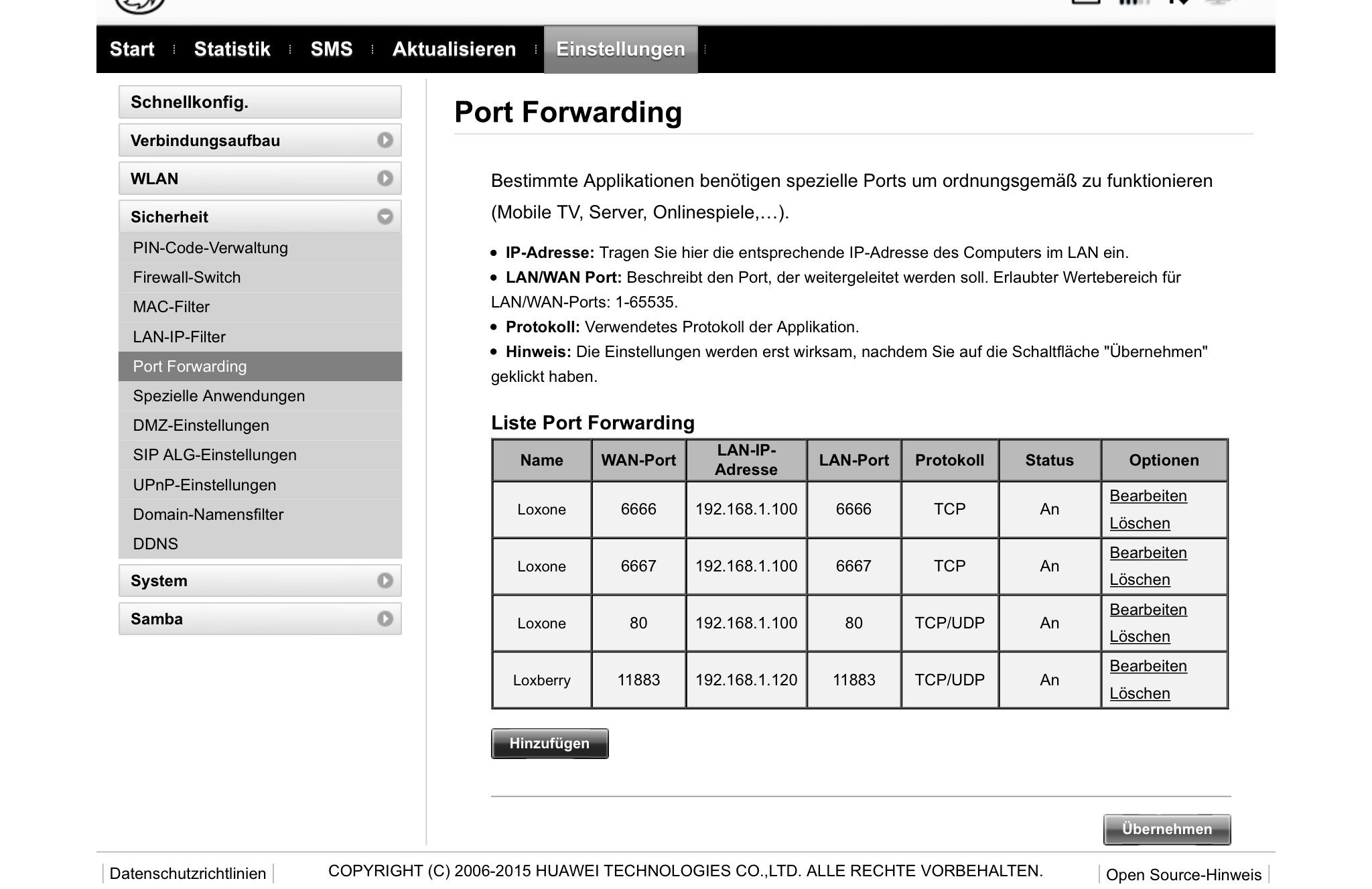 Einzig Tracking funktioniert nicht es steht oben "Tracking not running or restarting". Wenn ich auf das Register Tracking klicke kommt meine Loxberry IP und der Port 8083 (http://192.xxx.x.xx:8083/). Habe ich da was überlesen? Müsste ich da ein Portforwarding einrichten? Alternativ...was müsste ich installieren damit das mit dem Traking funktioniert?