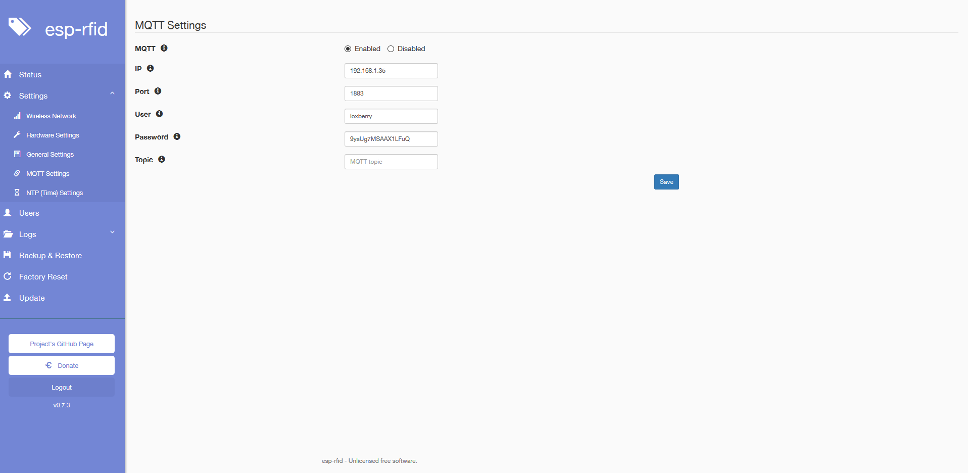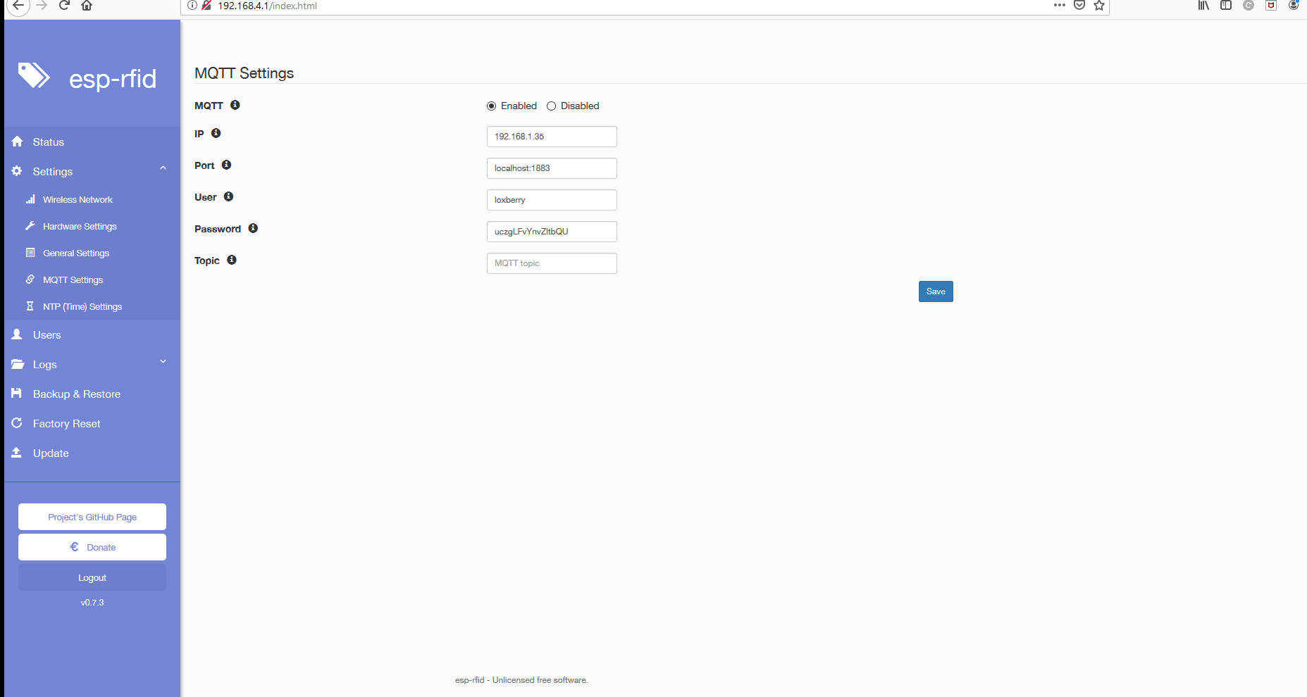 ich habe auf einem Loxberry das MQTT Gateway Plugin laufen, soweit so gut. Auf einem esp läuft ein programm, mit dem sich RFID Tags auslesen lassen diese daten werden dann per MQTT übertragen. Bei mir aber nicht, da muss irgendein fehler in meiner Konfiguration sein den ich aber nicht finde. Könnt ihr mir hier vielleicht weiter helfen? In den Bildern seht ihr einmal das MQTT Plugin und das RFID-esp programm