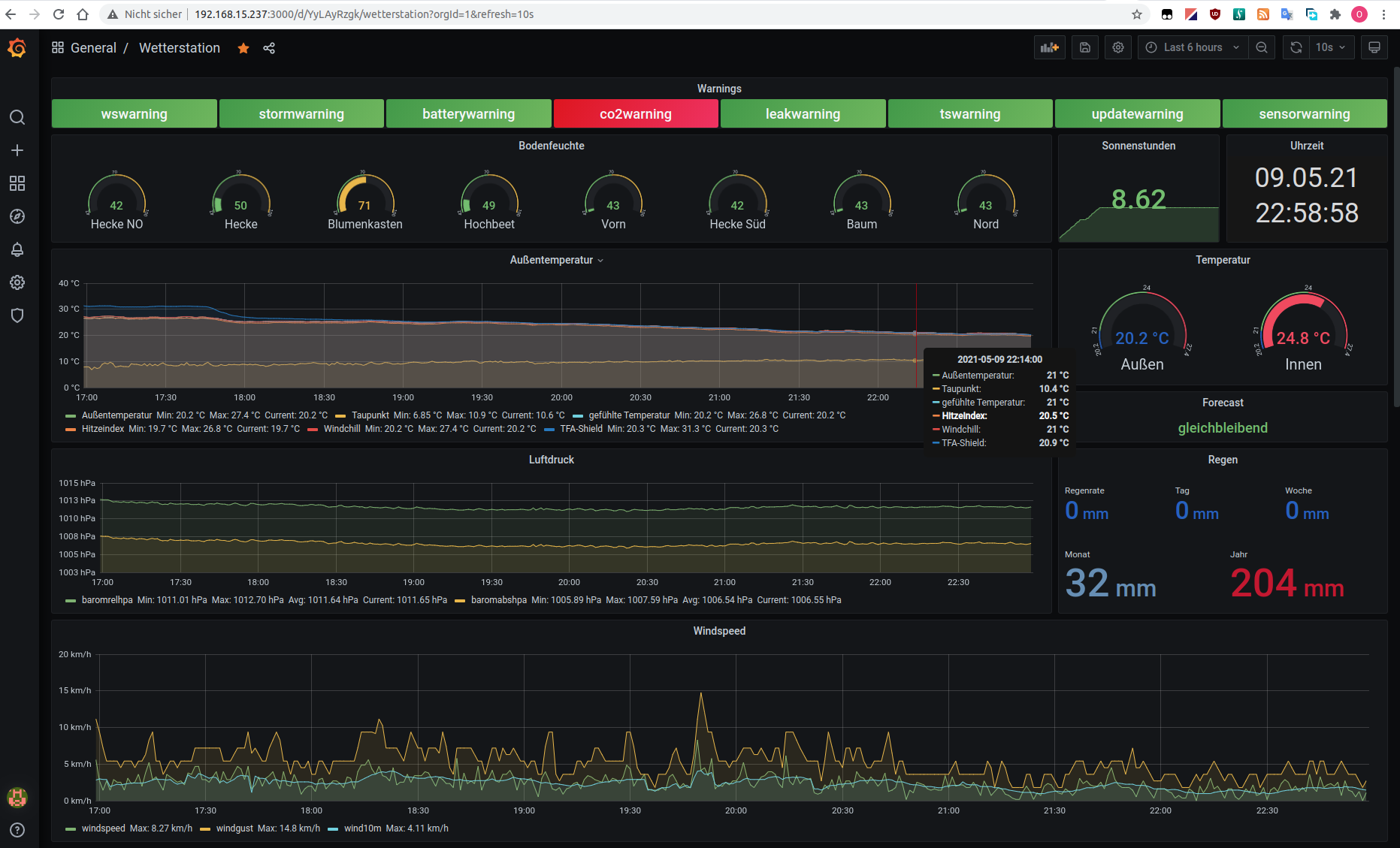 Hier ein Beispiel eines Grafana-Dashboards mit ein paar Daten meines DP1500.