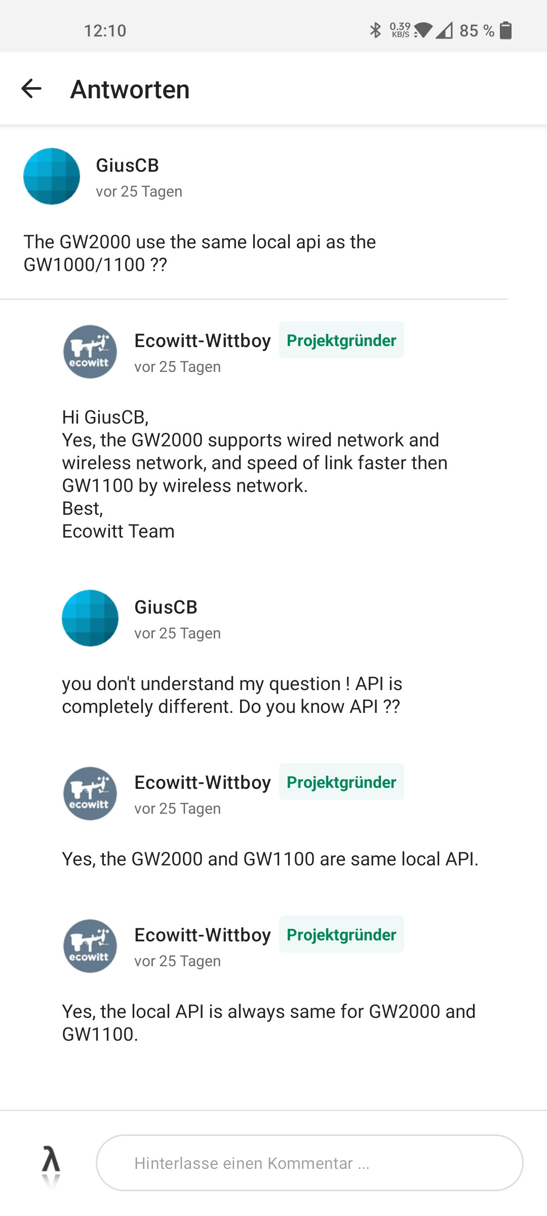 Und zu guter letzt scheint die API vom GW2000 gleich/kompatibel zu sein, wie du schon vermutet hast (siehe Screenshot vom FAQ auf Kickstarter).