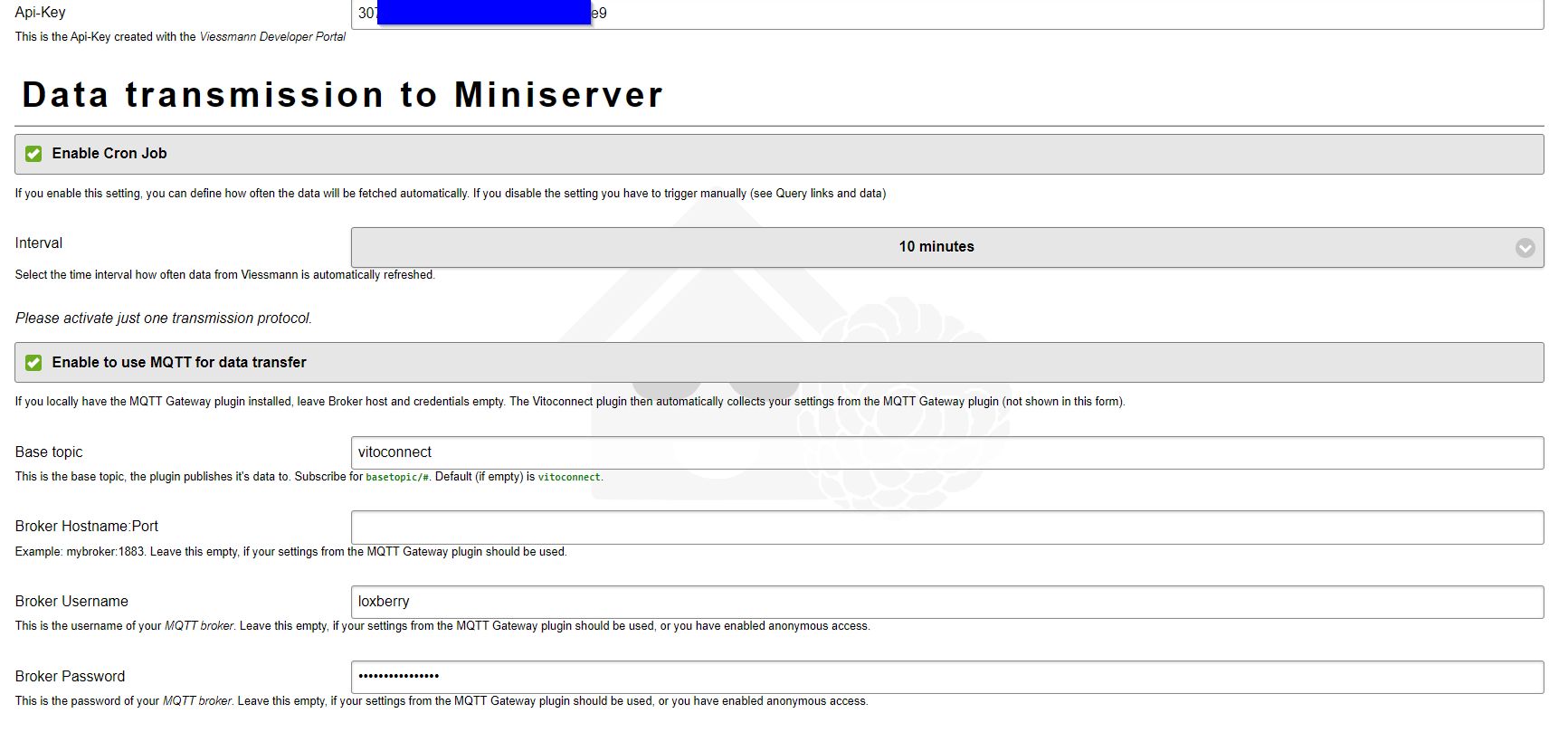 Einstellungen im Viessmann Plugin (ich habe auch mit http und leeren MQTT Einstellungen Versuche gemacht):