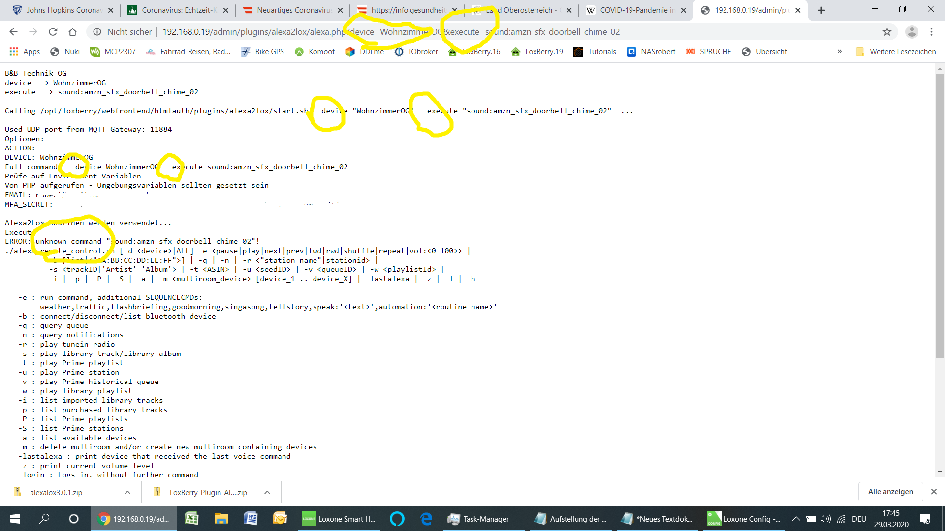 LOXO Bitte überprüfe deine Loxberry Zugangsdaten wenn gar kein Befehl durchgeht im Browser (Cache löschen) und der Config!
