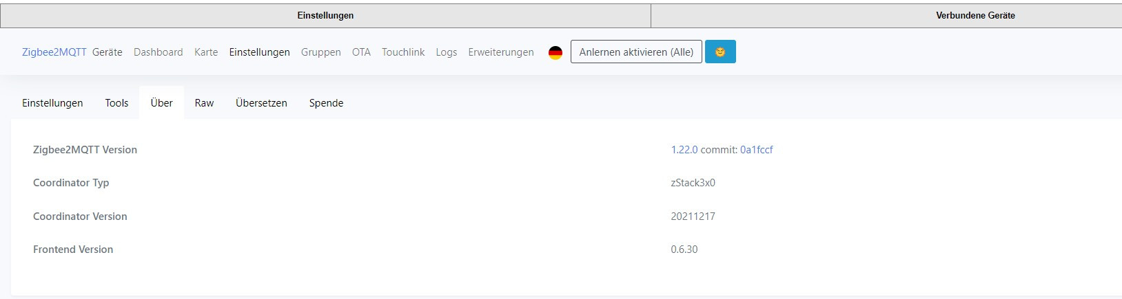 Gibt es eine Möglichkeit, die Zigbee2MQTT-Version im Plugin selbst zu aktualisieren? Laut dieser Webseite werden meine Geräte von der aktuellen Version 1.22.2 von Zigbee2MQTT unterstützt.
