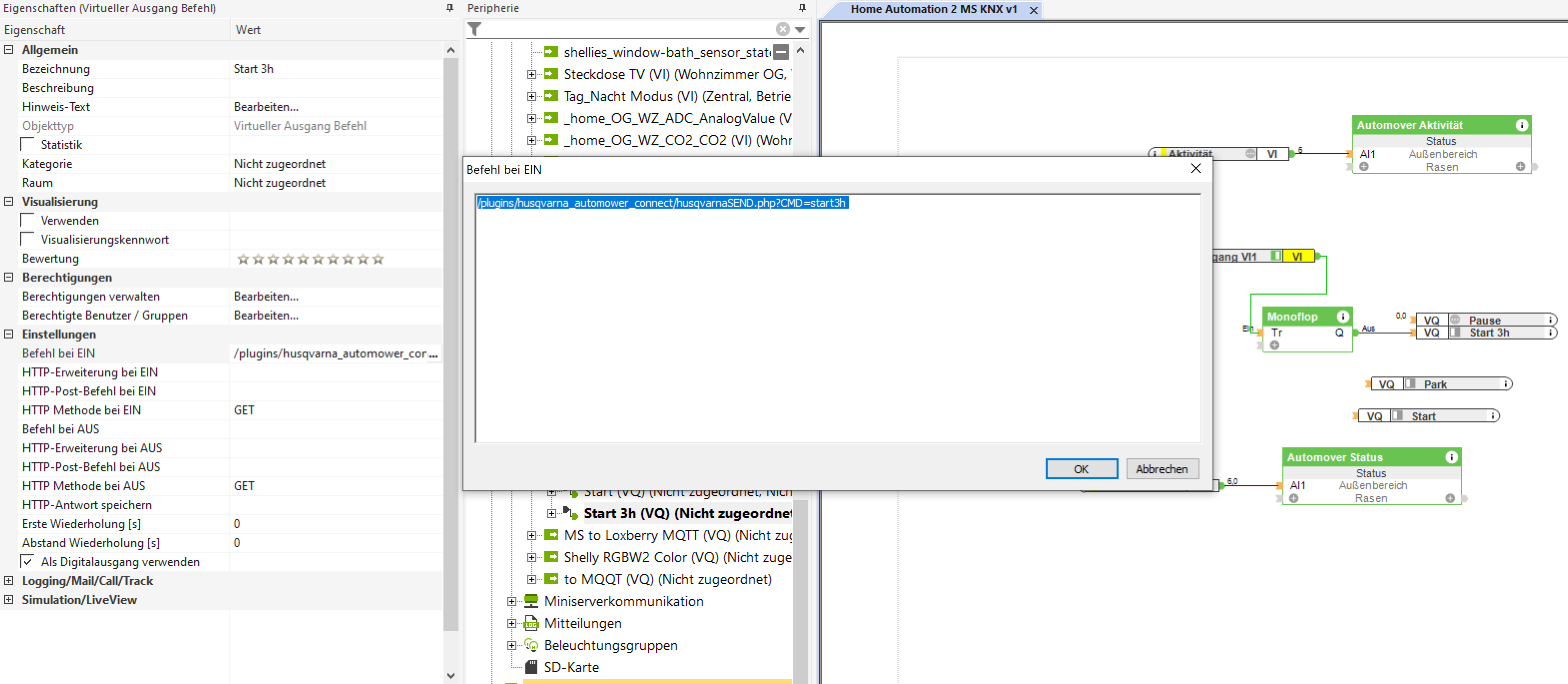 nachdem wir vor 2 Wochen einen Automower 430X bekommen habe, musste ich ihn natürlich in unsere Loxone Installation integrieren.