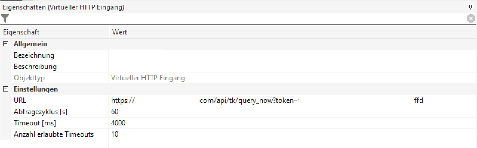 Entschuldige, da ich keine Fehlermeldung für den HTTP-Eingang erhalte, hielt ich das nicht für relevant. Anbei die Einstellungen für den HTTP-Eingang als auch der Rest der Eigenschaften der HTTP Eingang Befehls: