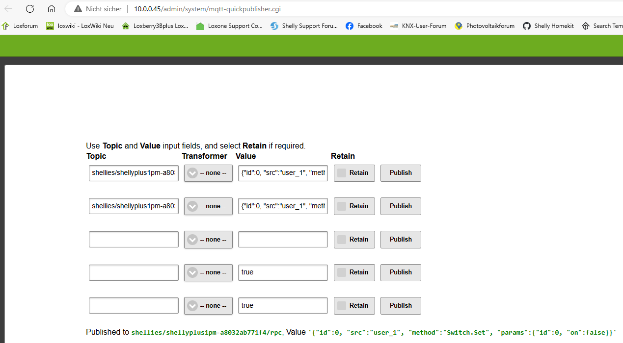Ausgänge von MQTT Prefix nehmen und wie in den Shots mit /rpc und dem Value ergänzen.
