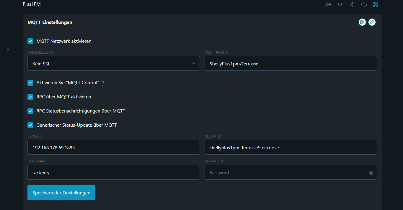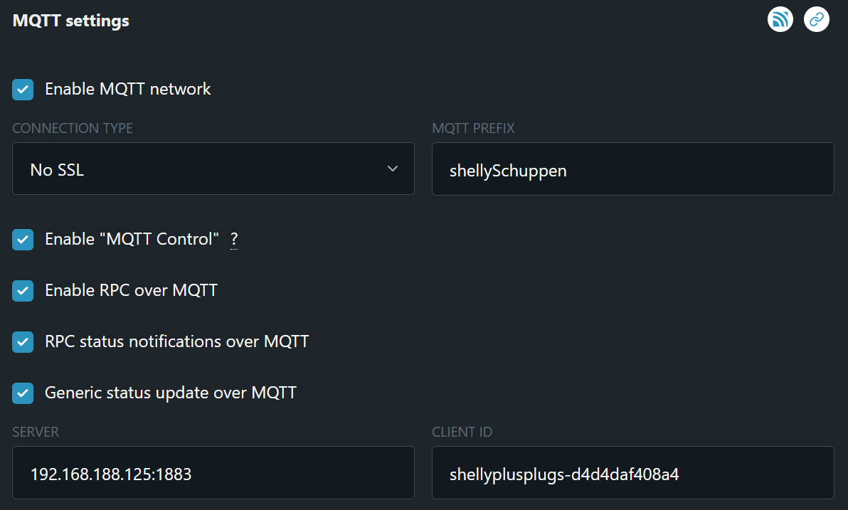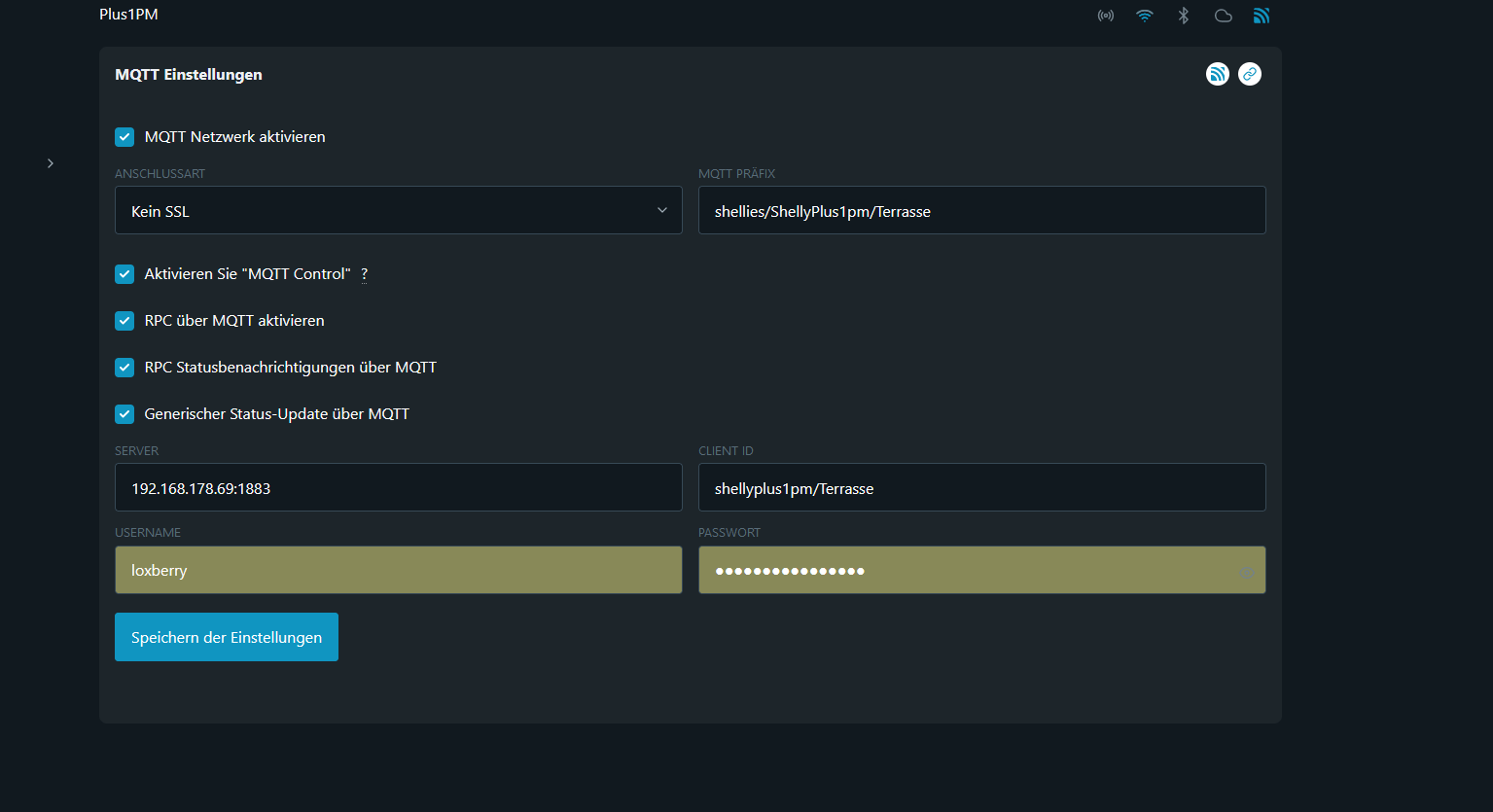 bei MQTT Prefix einfügen und shellies/ davorsetzen