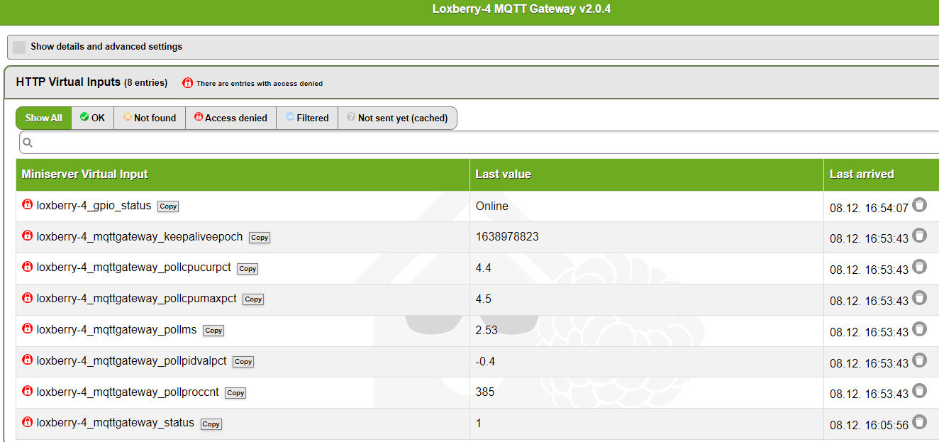 Die GPIOs lassen sich jetzt wieder einwandfrei aus Loxone schalten und der Status im MQTT passt auch.