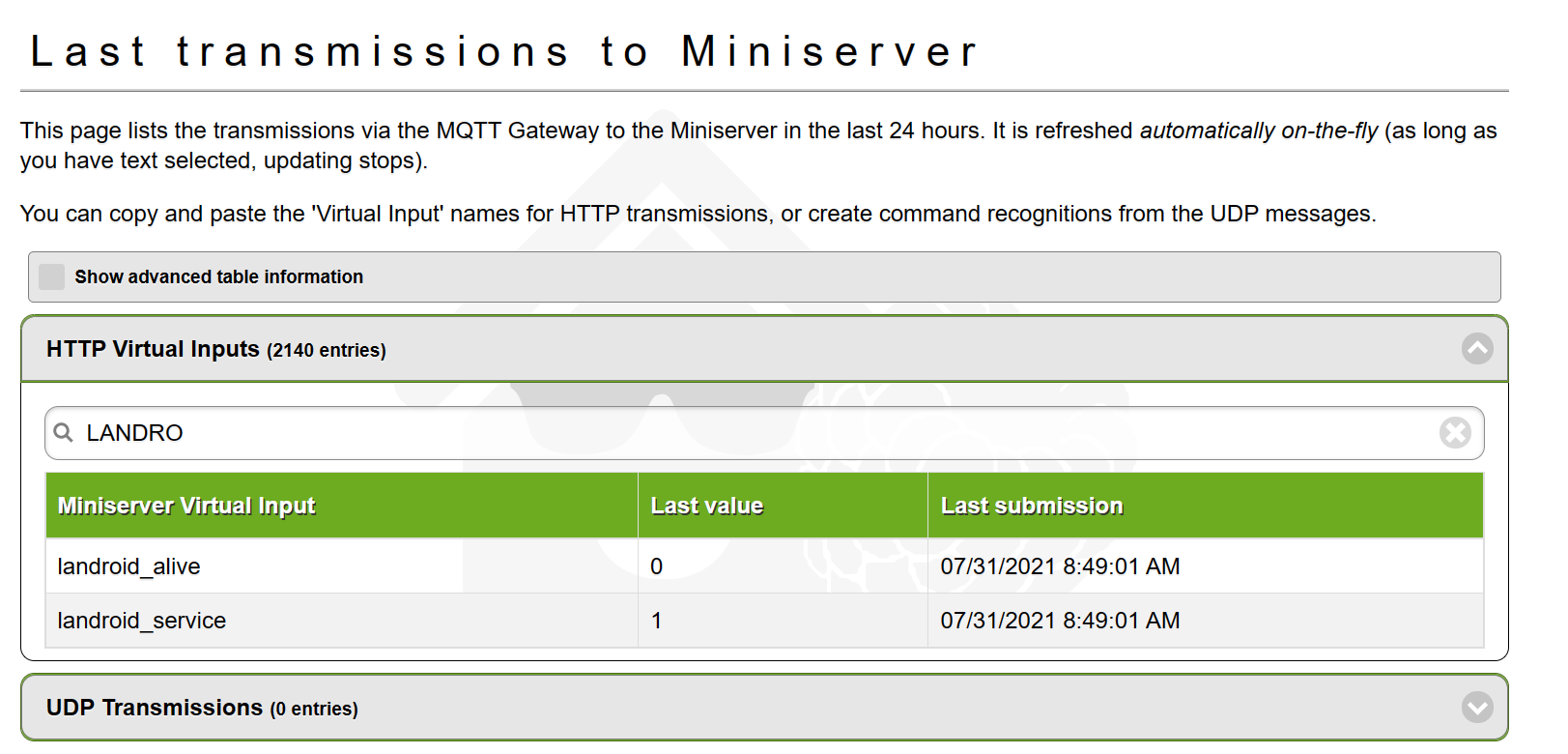 Trotz debug kommen leider nicht mehr Meldungen im Log. Gibt‘s irgendetwas was ich direkt auf der cmdline testen könnte?Code:Thu, 28 Oct 2021 16:34:46 GMT INFO: Cloud-Type: landxcape Thu, 28 Oct 2021 16:34:46 GMT ERROR: Could not Connect to Worx Server: StatusCodeError: 401 - {"message":"Unauthorized","code":"401.000"} Thu, 28 Oct 2021 16:34:46 GMT ERROR: StatusCodeError: 401 - {"message":"Unauthorized","code":"401.000"}🇺🇦 Hilfe für die Menschen der Ukraine: https://www.loxforum.com/forum/proje...Cr-die-ukraine