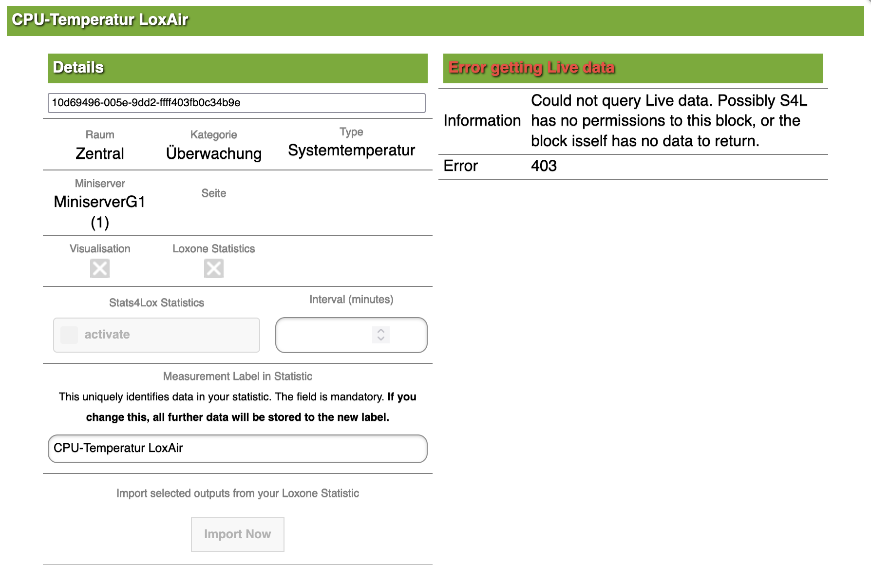Habe leider (offensichtlich) das gleiche Problem, no_data und Error 403 bei allen Miniserver Bausteinen .. Jemand eine Idee für mich? Habe auch schon neu installiert nach Anleitung aber keine Änderung. Der MS Zugriff scheint ja zu klappen, sonst kämen ja nicht die Bausteine rüber. Aber keiner verrät mir seine Werte, Import wird ausgegraut, Error 403, was immer der bedeutet.