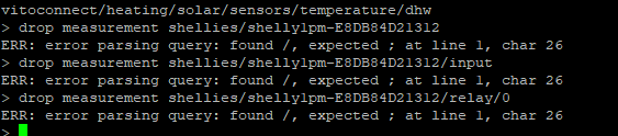 Habe gerade probiert die Influx-Einträge vom Shelly nochmals zu löschen (gemäß der Anleitung im Loxwiki), da ich vermute, daß es hier zu Problemen kommt und nochmal neu aufsetzen wollte.