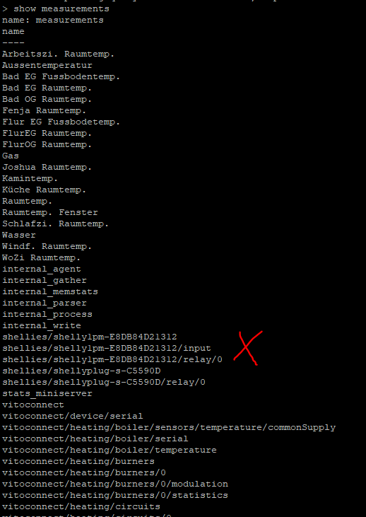 Wenn ich jetzt am MQTT-Collector wieder den Shelly angebe, wird dieser aber nicht in den InfluxDB aufgenommen, sehe ihn weder über Puty noch als Auswahl bei Grafana.
