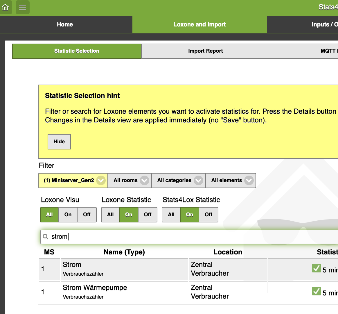 Weiß jemand, wie man das löst? Ich würde es vorziehen, nicht den zusätzlichen Schritt über den Miniserver durchführen zu müssen, da Stats4Lox meines Wissens nach in der Lage ist, jede Art von MQTT-Daten zu sammeln.​