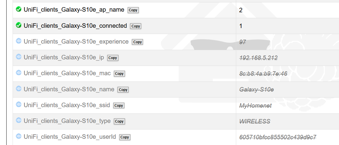 zuerst möchte ich mich recht herzlich für das tolle Plugin bei dir bedanken. Bei den WiFi Geräten habe ich es im Einsatz und funktioniert perfekt. Allerdings wäre es auch von Vorteil die Präsenz von Geräten vom Typ "WIRED" im UniFi-Netzwerk zu erkennen. Diese Geräte werden im Plugin auch angezeigt und können aktiviert werden, aber leider ändert sich dann der MQTT Connected Statuswert nicht. Ich vermute das der Status im UniFi nicht ersichtlich ist und darum nicht an MQTT weitergegeben wird.