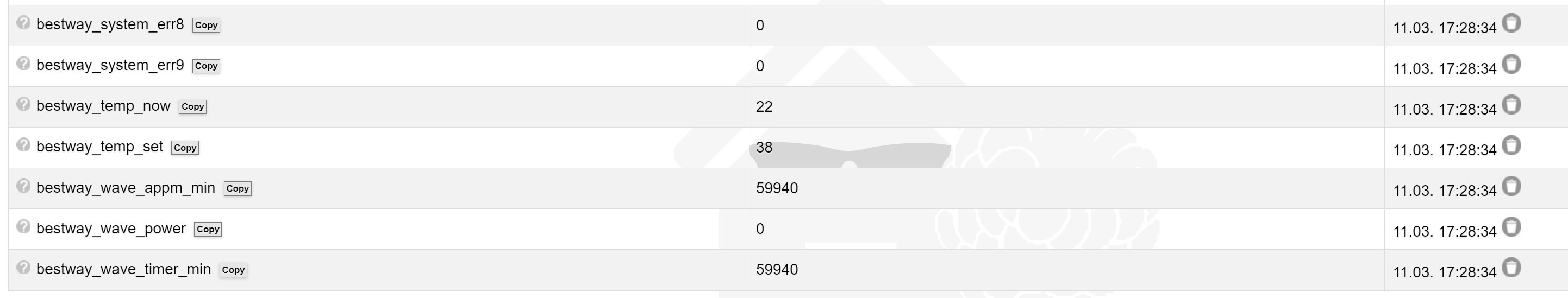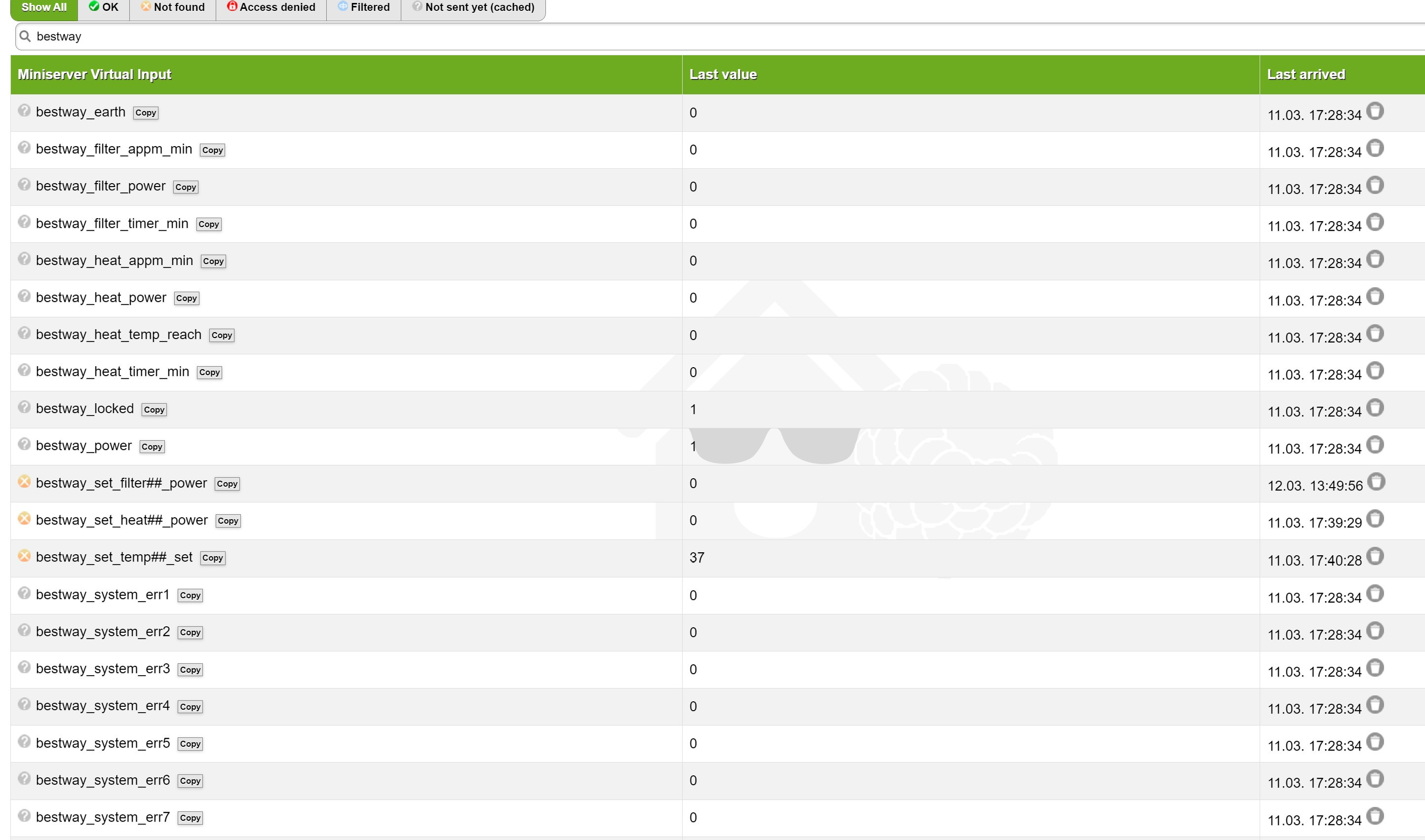 Kommen mittlerweile Werte? ansonsten evtl. mal den Loxberry durchstarten, kann sein dass das Skript vom Bestway Plugin die Verbindung zum MQTT Gateway verloren hat und nicht wieder aufgebaut bekommt.