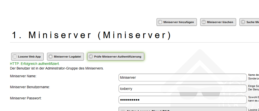 -Unter loxberry Miniserver wird KEIN MS gefunden, aber bei Versuch der Authorisierung kommt die Meldung, dass der User Loxberry sich als admin am MS anmelden kann...