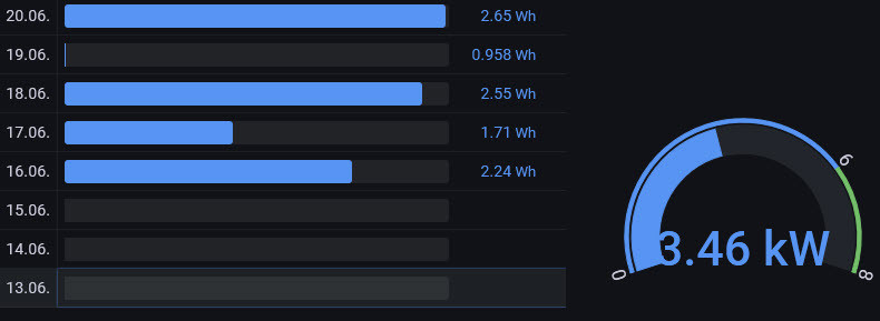 Ich möchte gerne Tages- Wochen -Monatsverbräuche und -Erträge in Grafana anzeigen lassen.
