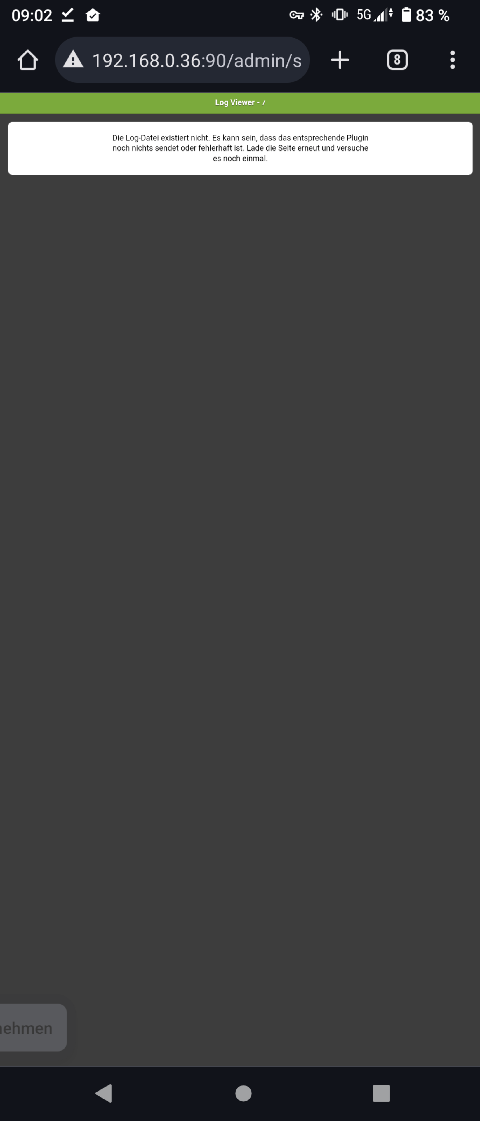 When I open WebUI, it starts in a new broser 192.168.5.39:8888 but page doesn't exist. how do I check logfile in debug mode?