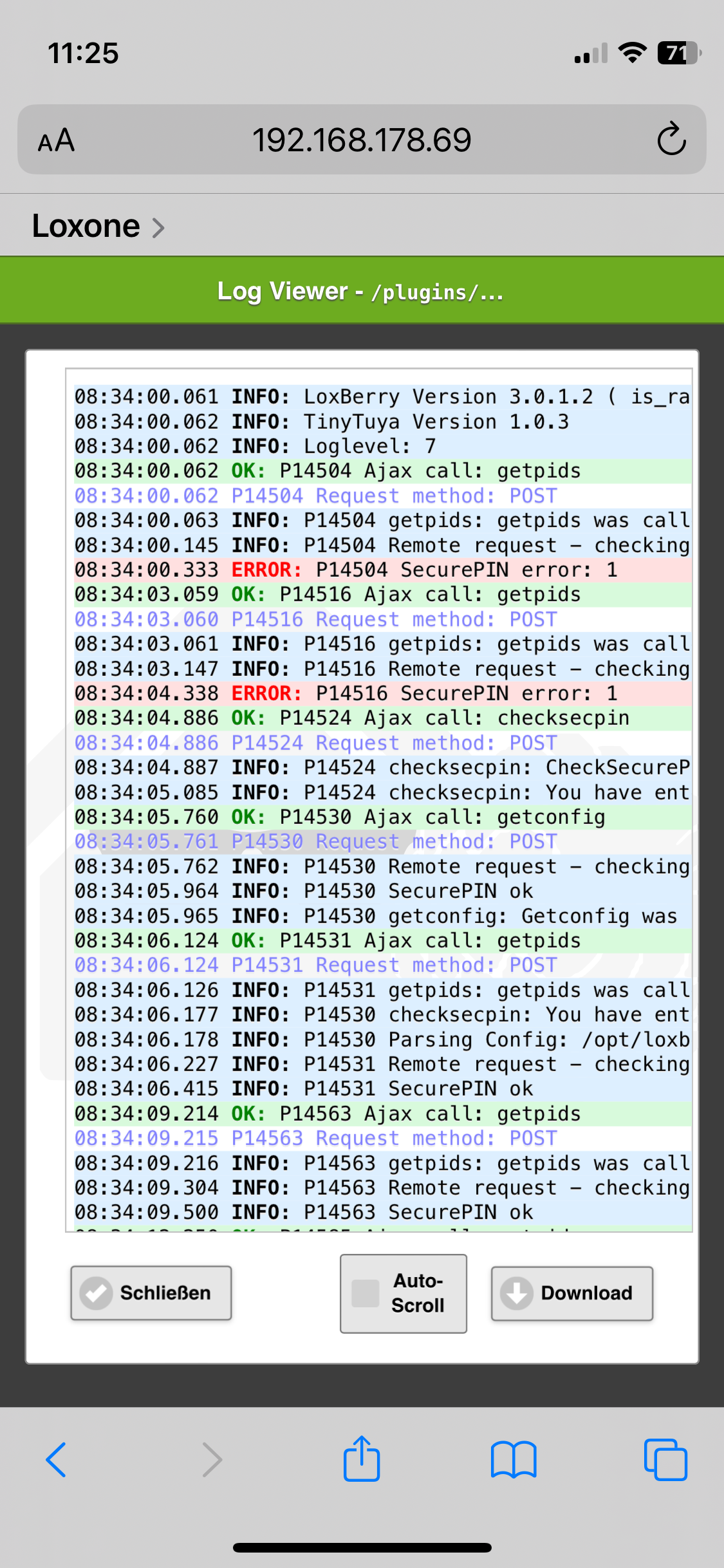 Im Loxberry Plugin Webserver sehe ich aber schon, dass es nicht mehr richtig ankommt.