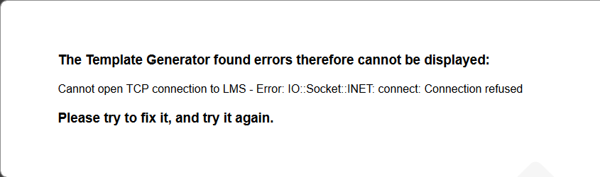 Schau bitte, ob LMS läuft, die IP ....111 richtig ist, und das CLI am LMS aktiv ist auf Port 9000.