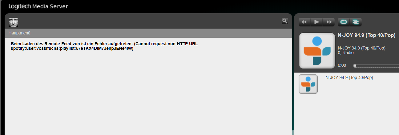 "Beim Laden des Remote-Feed von ist ein Fehler aufgetreten: (Cannot request non-HTTP URL spotify:user:vossifuchs: playlist:57eTKX4DlM7JehpJENe4IW)"