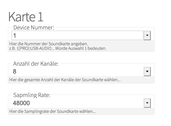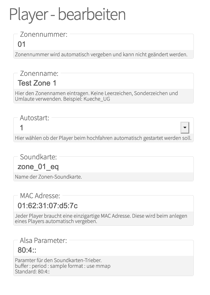 I set up an internal zone using channels 0 and 1 of the soundcard. I also set up an internal player.