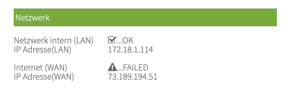 Netzwerk intern: ...FAILED Internet: ...FAILED