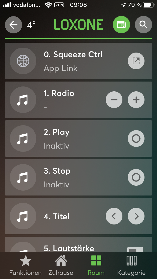 Just wanted to share with you my little and amateur solution to minimize number of buttons required to control a zone in Loxone app.