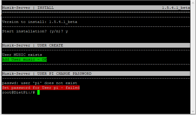 Hab alles installiert, anschliessend dann über Putty Befehle "wget music-server.net/download/install.sh -O install.sh ", "bash install.sh" oder "bash install.sh b". Dabei kommt immer die selbe Meldung. -