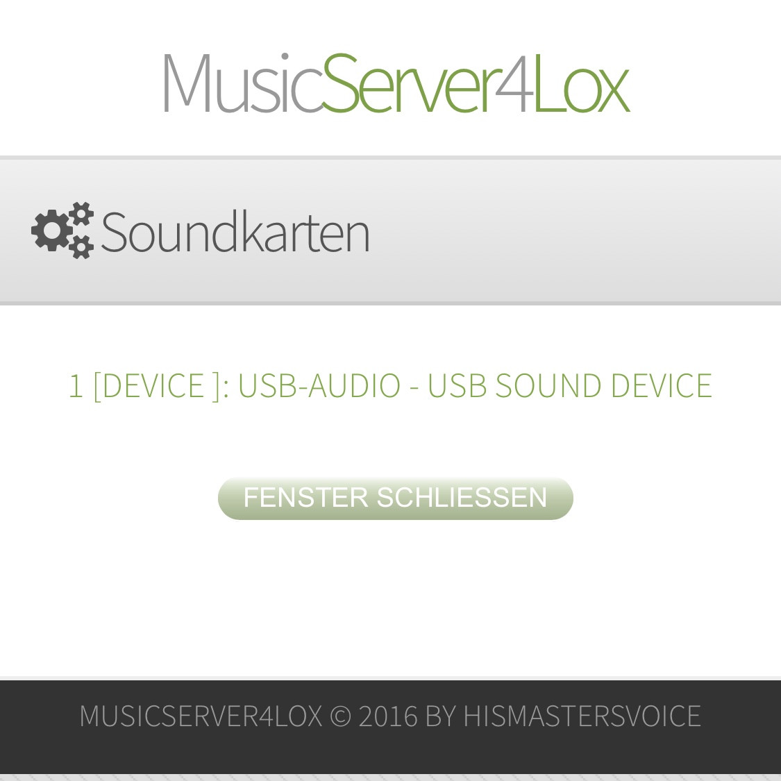 Ich habe die Soundkarte angelegt. Anschließend eine Zonenkarte hinzugefügt (Kanal1 li/re = 0 Ausgangskanal). Zum Schluss noch den internen Player und im LMS wird alles korrekt angezeigt.