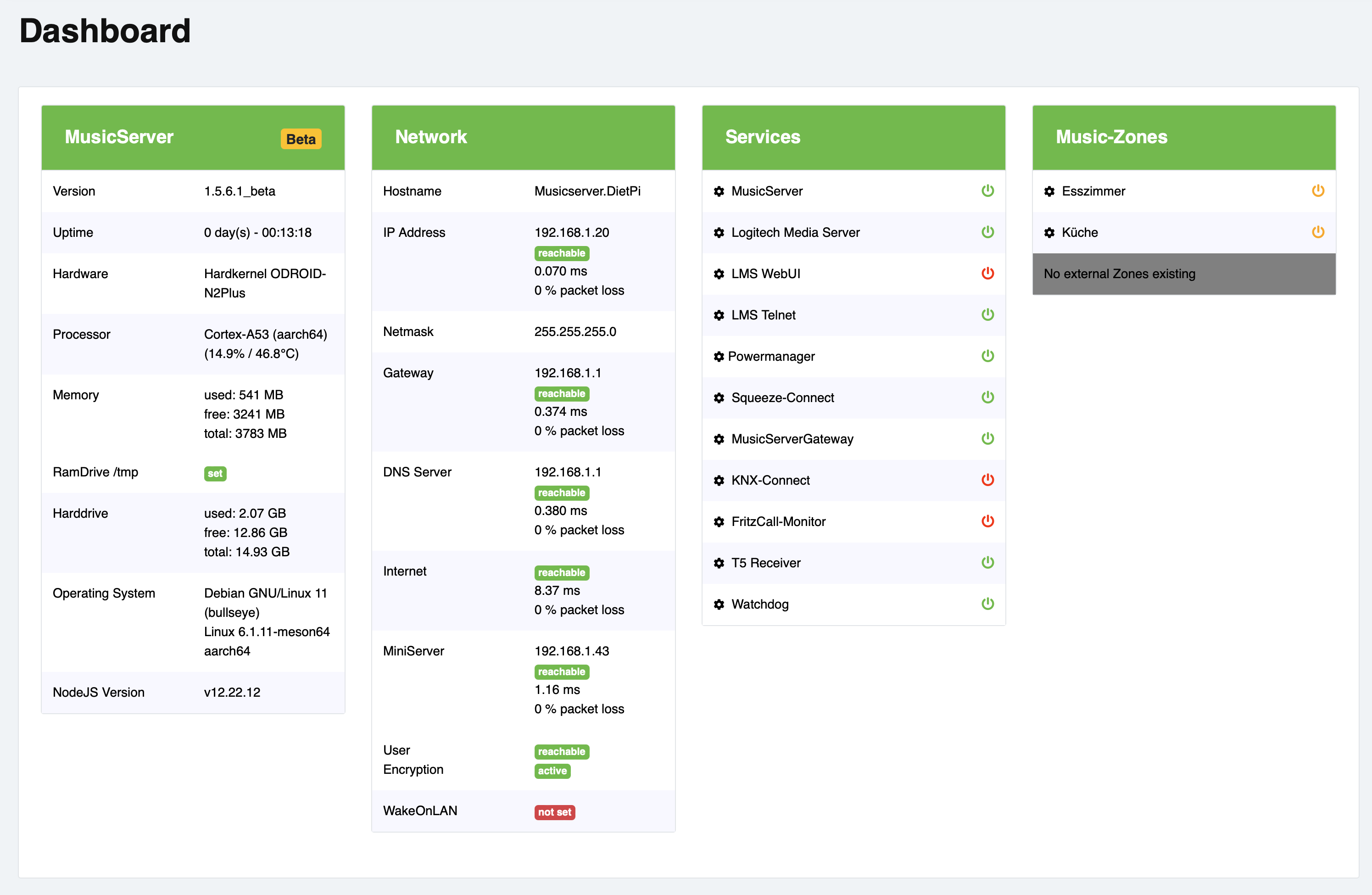 Siehe Screenshots - mir fliegt nun regelmäßig die LMS WebUI um die Ohren - System nicht mehr bedienbar - die WebUI lässt sich auch nicht neu starten. Stecker ziehen hilft... Ein Neustart des Logitech Media Service via GUI führt zum Komplettausfall - und der Stecker muss gezogen werden.