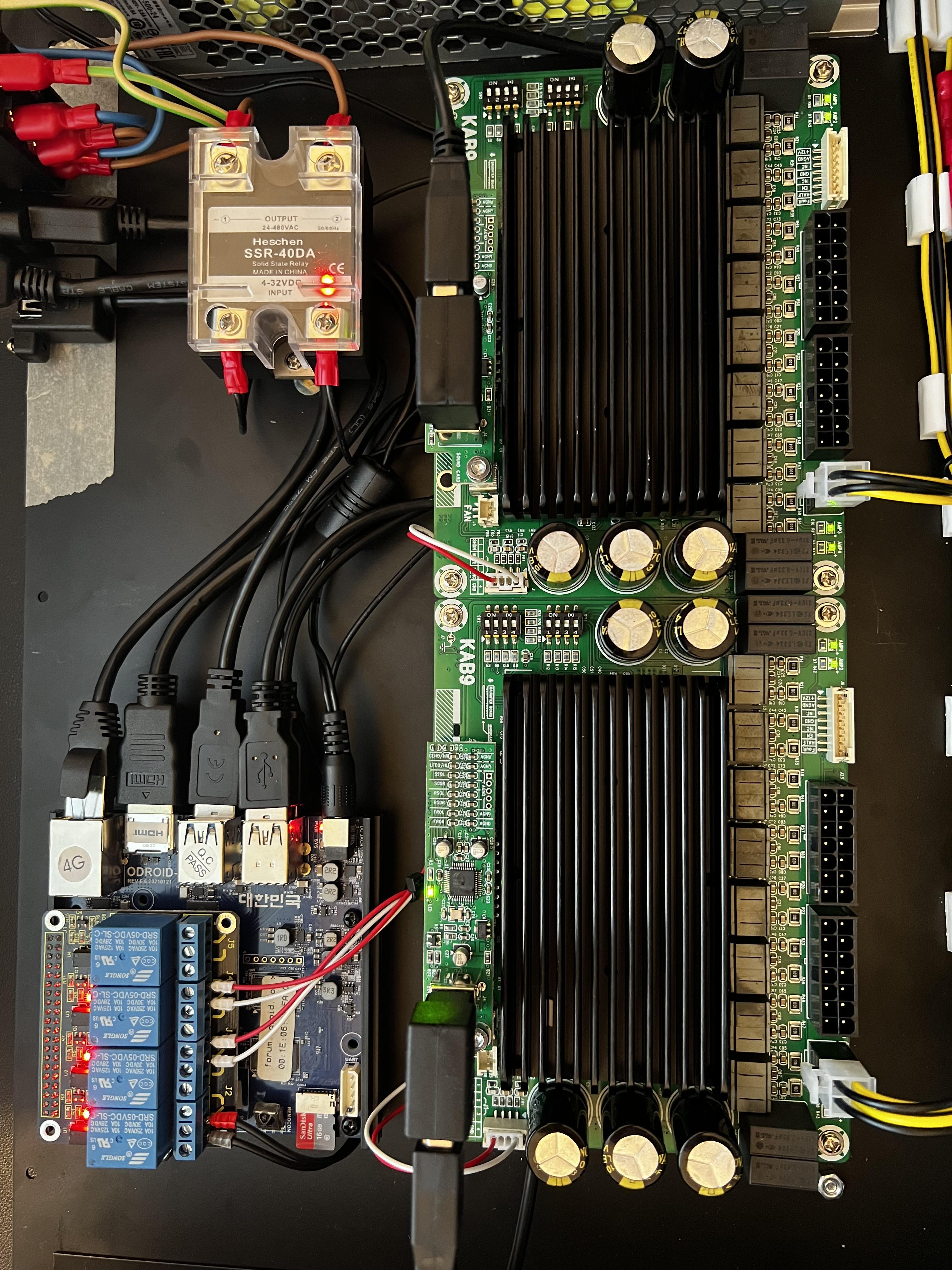 Seltsames Verhalten - nach einem Reboot gehen alle Relais auf EIN ( rote LED ) SSR EIN und 500 Watt Netzteil -EIN - folglich ... auch die kleinen grünen LEDs an AMP1 AMP2 AMP3 AMP 4 an den KAB9 Boards 1 und 2