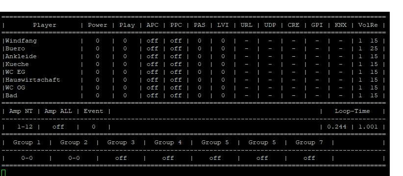 Hier siehst du das jetzt der Player Buero und die Group 1 auf 0 sind.