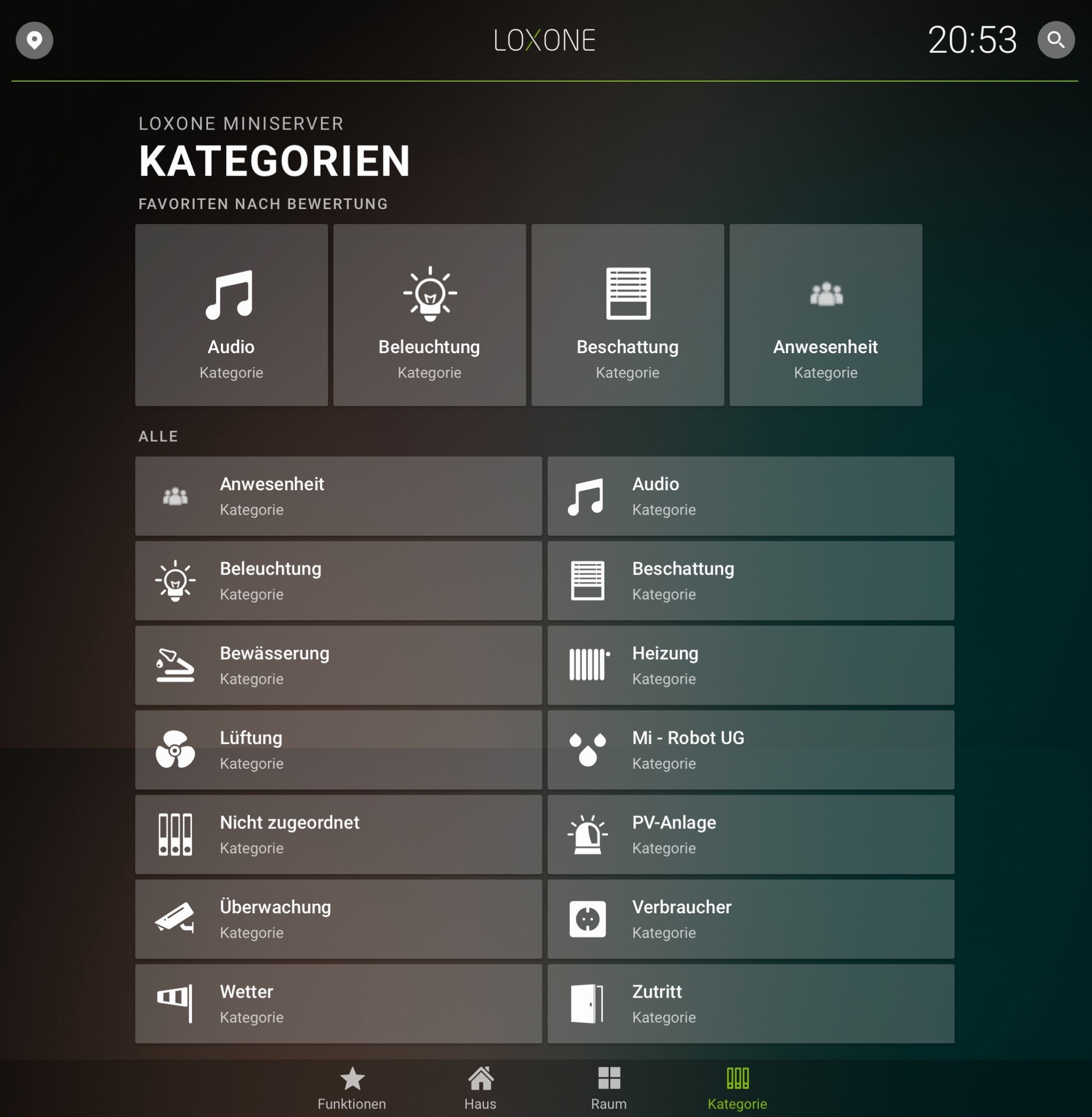 Es gibt auch einen neuen Punkt "Haus" in dem Zentrale Funktionen per Bewertung eingesetzt werden können.
