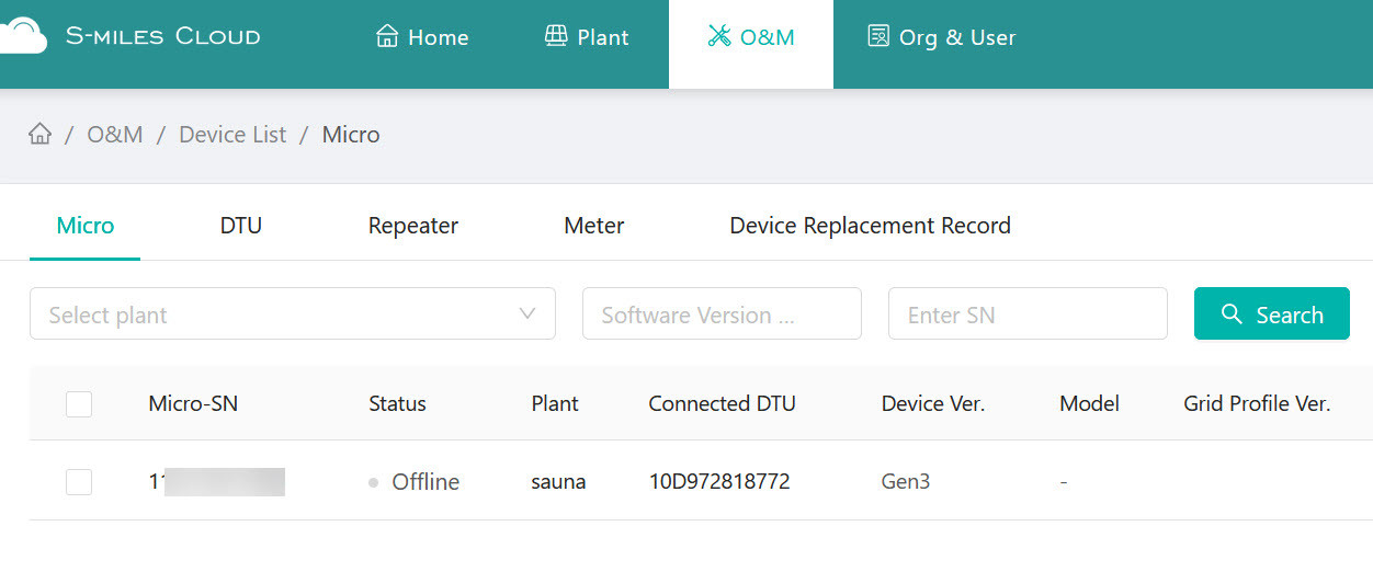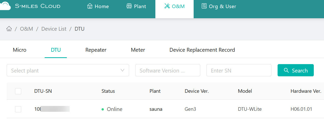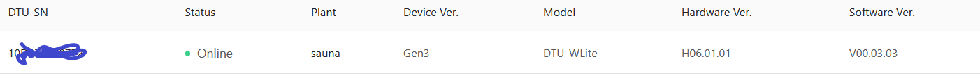 Der DTU wird als online erkannt, der Wechselrichter bleibt offline
