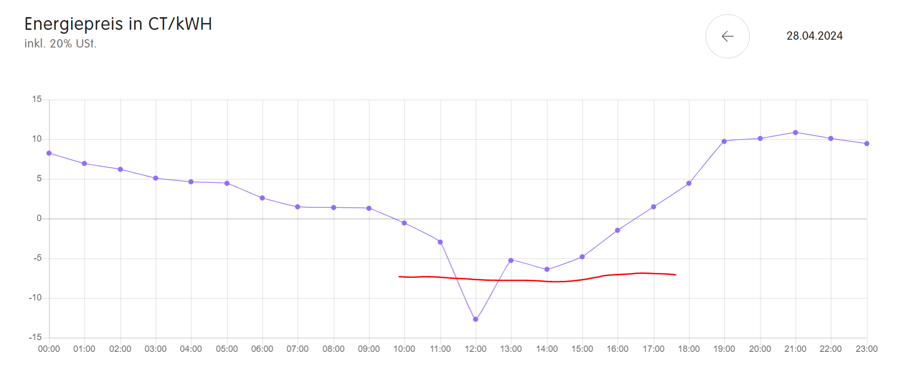 Naja so wenig macht das über das Jahr gar nicht aus. Und es ist in meinem Fall ja nicht nur ein Haus sondern zwei. Und wenn man da dann einen recht großen Akku hat, zwei Elektroauto, einen Pool, Wärmepumpen (für den Pool und zum heizen/kühlen), Warmwasser erzeugt, einen Dampfgenerator anwirft, Klimaanlage in Betrieb hat - auch wenn das nicht immer alles gleichzeitig Sinn macht - aber einen Bezug von 45 - 50kW habe ich da dann schon immer. Und da sind die 20kW um den Akku zu laden noch gar nicht dabei. Ich meine schon, dass es Sinn macht zu schauen, dass der Akku bei negativem Strompreis leer ist um dann die 40kWh + die 45-50kW über zwei oder drei Stunden die der Preis negativ ist also in Summe grob so bis zu 200kWh zu verbrauchen. Das hilft ja auch dem Netz wenn ich dann Abends wenn Strom benötigt wird wieder ins Netz einspeise.