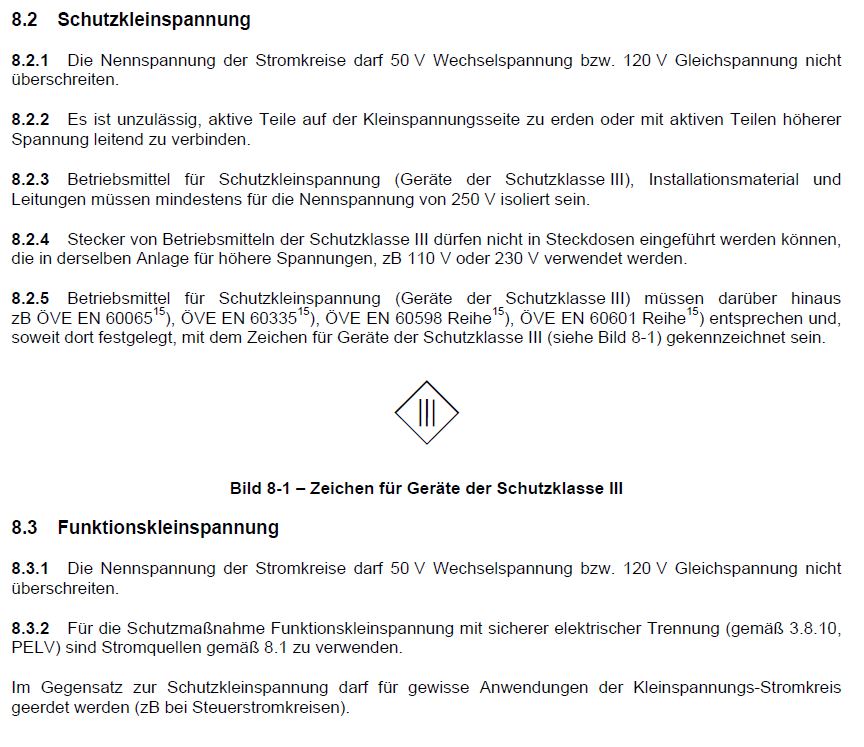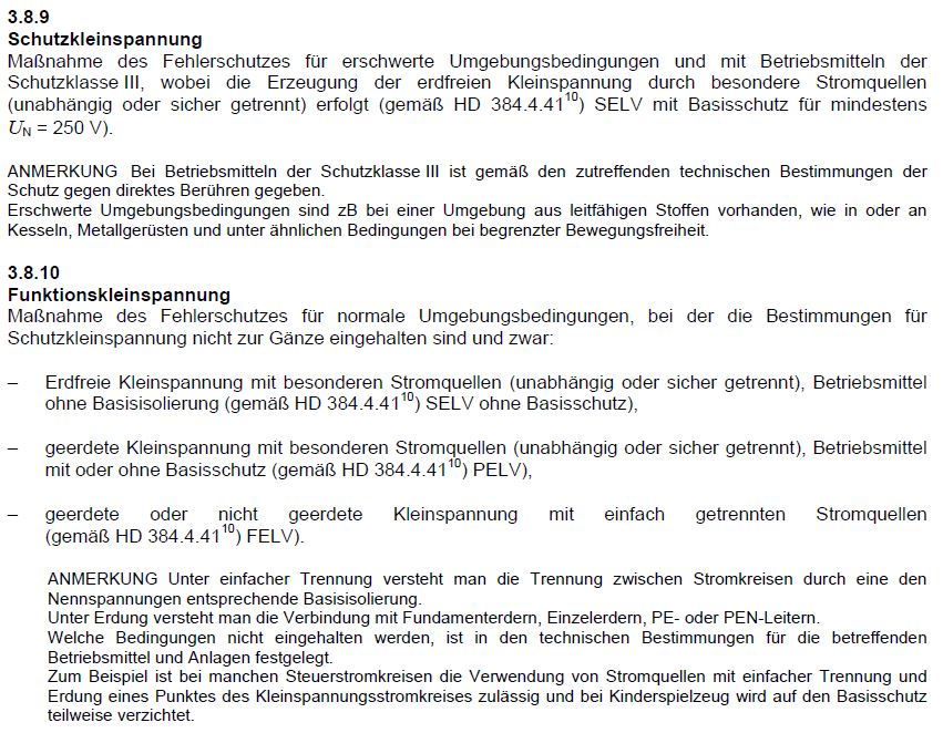 Nahdem der Wiki-Eintrag VDE, also deutschlandlastig ist - habe ich in der ÖVE/ÖNORM E8001-1 nachgelesen.