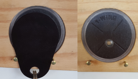 Es besteht aus einer Holzleiste in welcher die RFID-Reader versenkt eingebaut sind. Als Halterung dienen 2 kurze Nägel welche bis auf 3-4 mm Tiefe (Schlüssel abhängig) eingeschlagen sind.