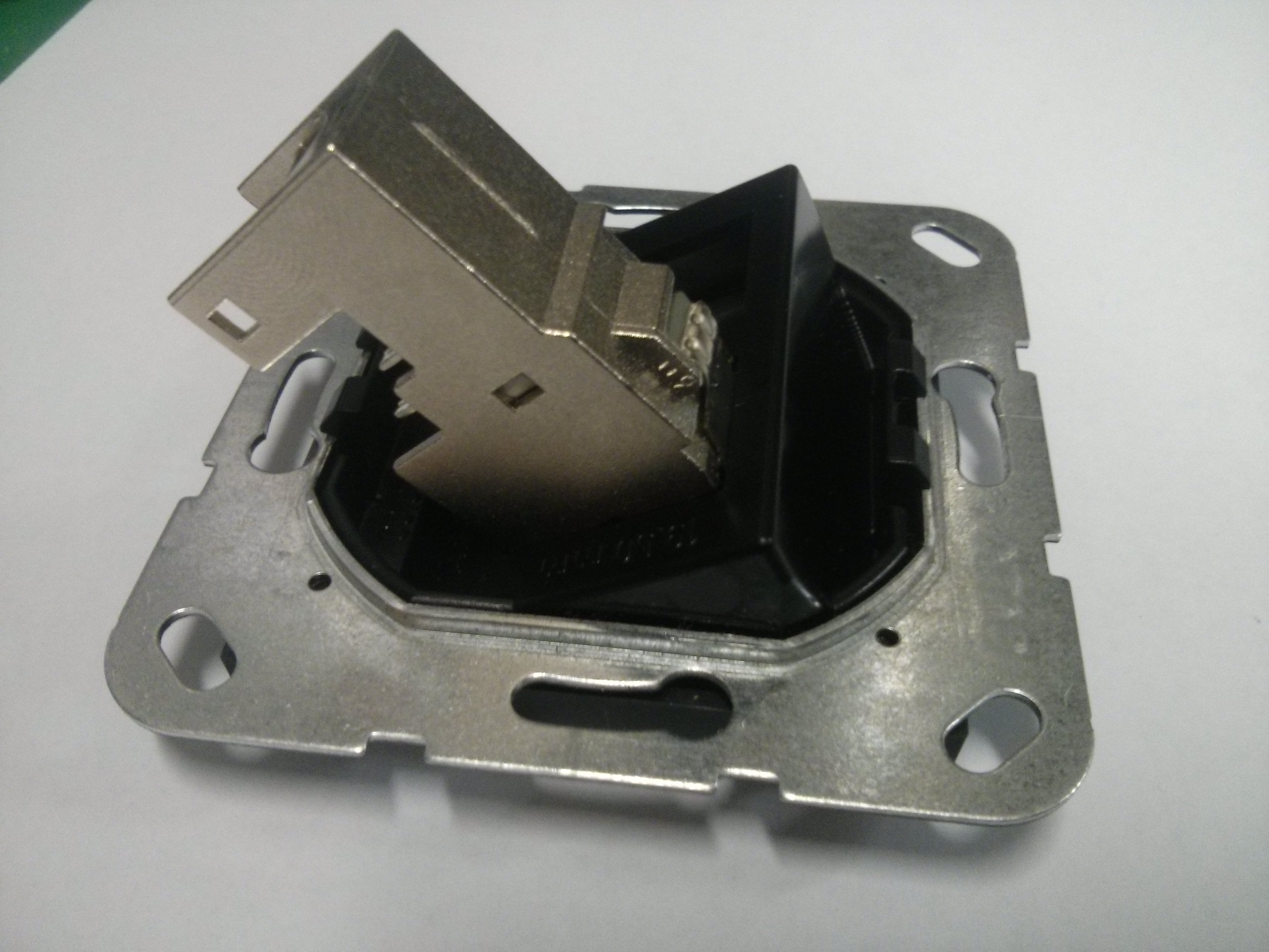 Die Keystone gibt es sogar als 270° Variante (130B12-E), damit kann das Kabel ohne zu knicken schön in eine tiefe Elektronik Dose (1068-21) von Kaiser gelegt werden.