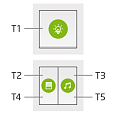 Einfach-Taster oben: Klick ->Licht an / Erneuter klick-> andere Szene / Doppelklick -> Licht aus