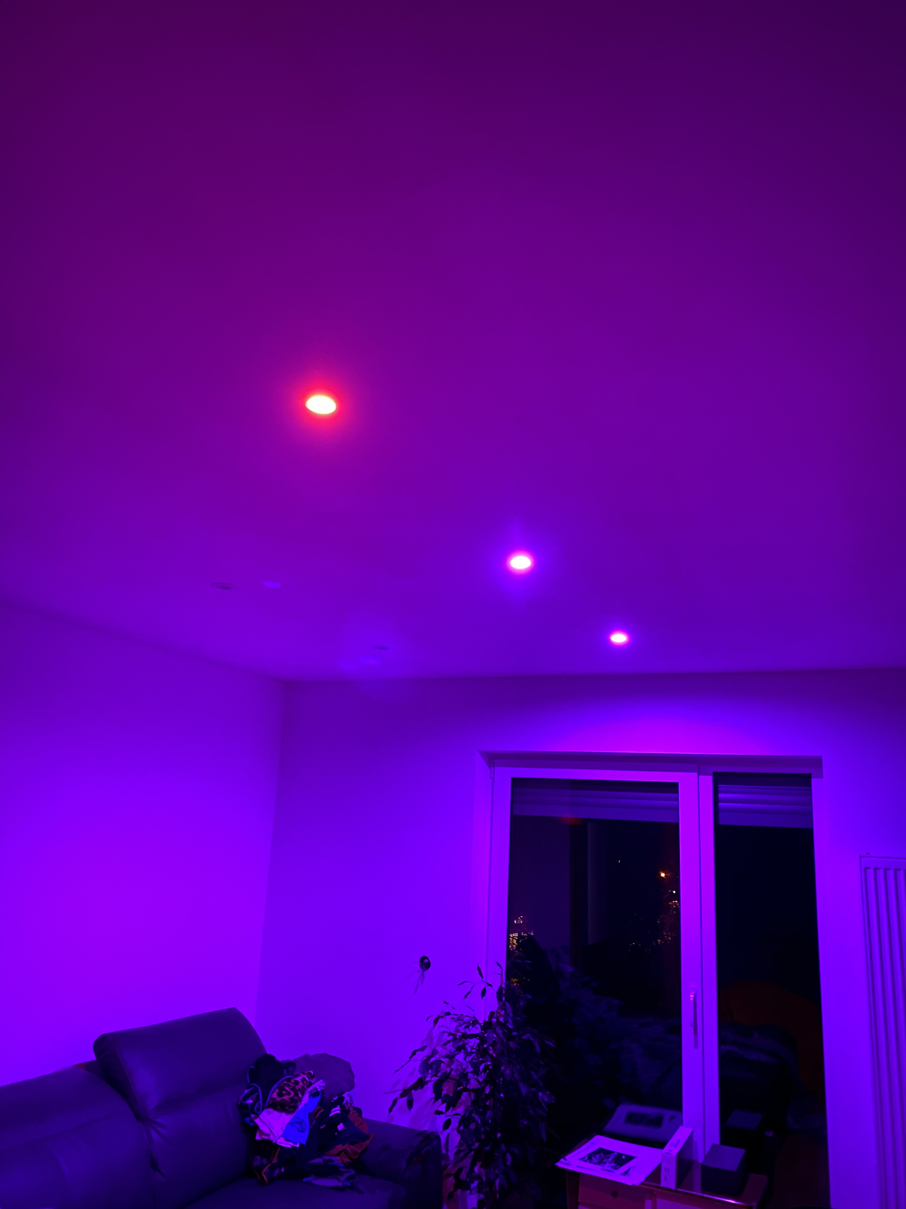 Es ändert sich farblich auch nichts wenn ich die anderen deaktiviere. Der Spot ist auch immer etwas leicht dunkler. Heute hat er ganz kurz mal heller geflackert.