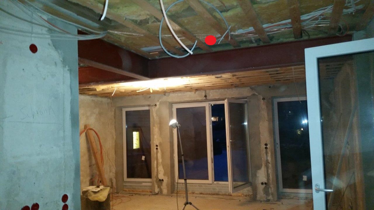 Es sind nun überall Kabel gezogen, also in der Decke als auch unten in den Wandecken im Wohnzimmer. So kann ich auf Stand-Lautsprecher zurückgreifen oder eben Deckenlautsprecher. Ein 5.1 System könnte ich nachrüsten. Das ist mir nicht ganz so wichtig, dass der TV synchron mit den Lautsprechern in der Küche läuft.