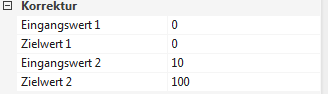 was ist bei der Korrektur des Analog Eingangs eingestellt bzw. wie ist der Ausgang skaliert?