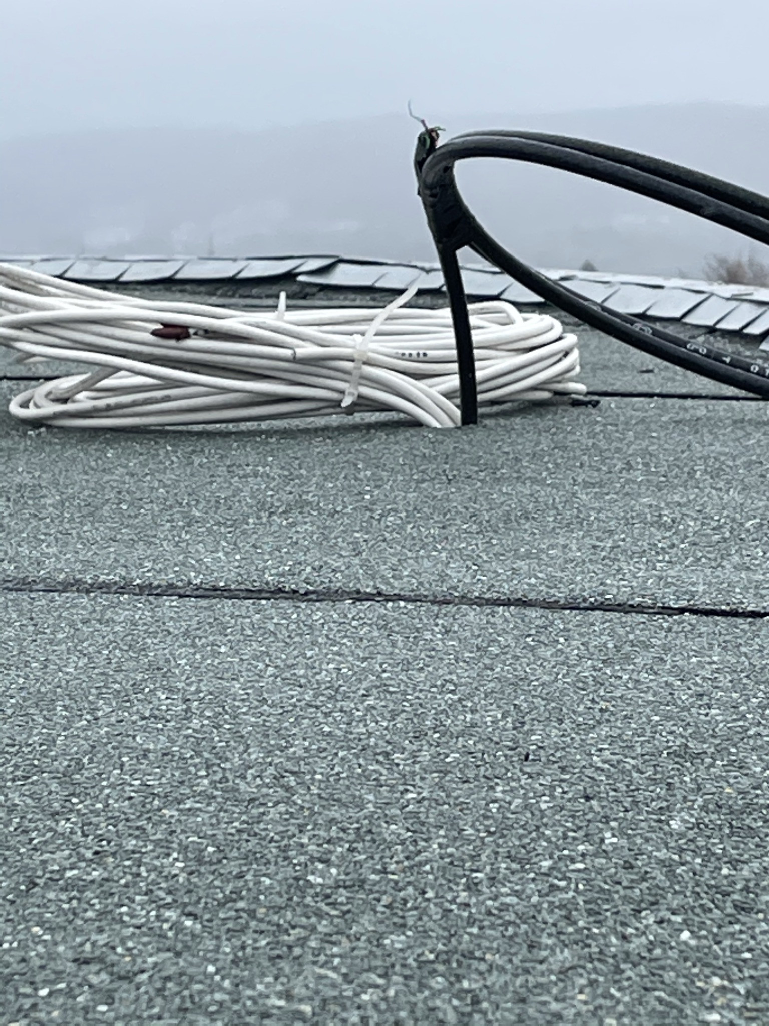 Ich habe Steine auf dem Flachdach, und darin habe ich dann die Kabel in ffkus Rohren eingepackt bis zum Ziel.