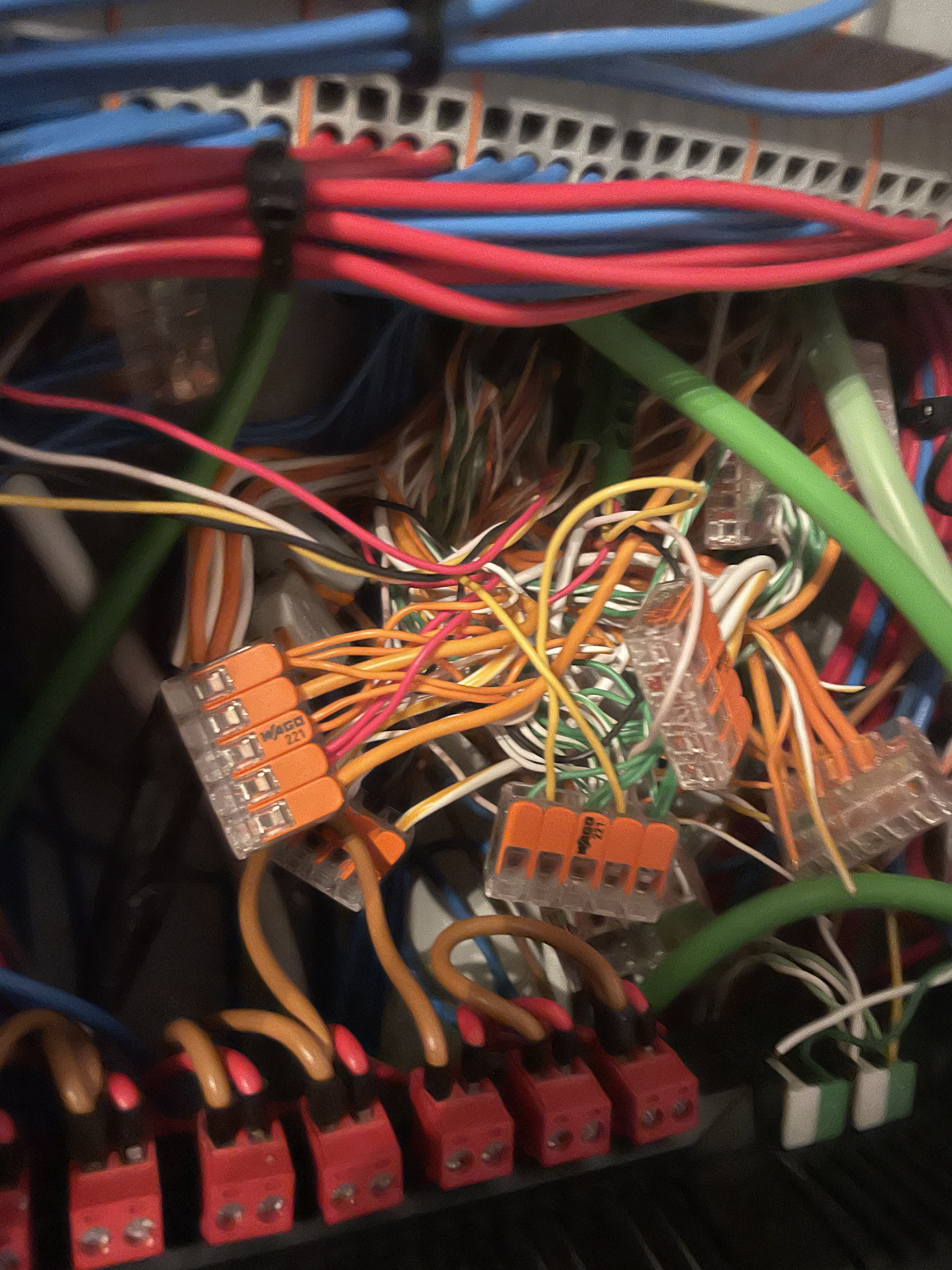 Die Installation so geht gar nicht. In nen Verteiler gehören meiner Meinung nach, keine WAGO oder Lüsterklemmen. Wenn dann mit Hutschienenhalter...